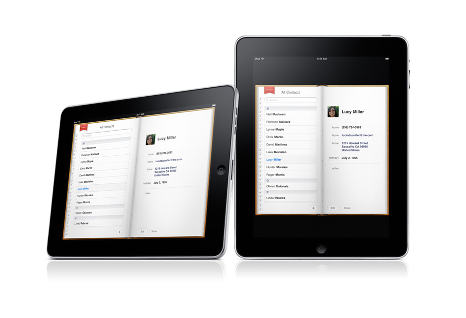 iPad的通訊錄界面。