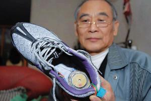 從外表上看,這雙運動鞋很普通,可夜晚時將它穿在腳上,鞋子就會發(fā)出光線,足以照亮回家的路。更為神奇的是,這雙會發(fā)光的鞋還能為手機(jī)電池充電(上圖)。這雙發(fā)電鞋的發(fā)明者就是66歲的成都老人石才俊。