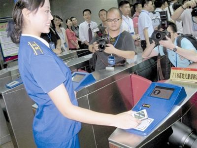 昨日下午2時,國內(nèi)首張“手機地鐵票”在公園前地鐵站面世。記者現(xiàn)場觀看了演示過程,市民只需用手機往地鐵閘機的讀卡區(qū)前一晃,只聽“滴”的一聲閘機扇門就打開了,再在出閘機前一晃,就順利地刷卡出站。