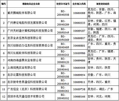 公告顯示,違規(guī)企業(yè)中12家跨地區(qū)經(jīng)營的增值電信企業(yè)被三個以上省(自治區(qū)、直轄市)通信管理局查處。