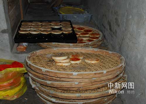 當(dāng)天下午,根據(jù)舉報線索,工商執(zhí)法人員在椒江三甲街道的樓里村一處二層高的樓房里發(fā)現(xiàn)這個“黑月餅”加工點!白哌M樓房的里屋,各種不同的月餅餡堆放成一地,周圍蒼蠅四處橫飛,空氣也十分污濁。我們進去的時候還有一位光著膀子的老漢正在桌子上赤手和著月餅餡,桌子的另一邊有一個烤月餅的爐子,剛烤好的月餅堆放在一邊。衛(wèi)生狀況很不好!眻(zhí)法人員告訴記者,檢查中在樓道底層還發(fā)現(xiàn)了一些加工的用的面粉和一個攪拌機,幾桶十分骯臟的食用油堆放在一邊,環(huán)境臟亂不堪。