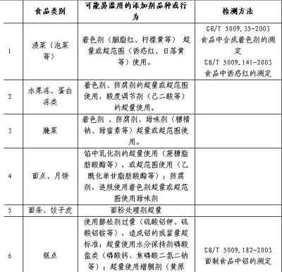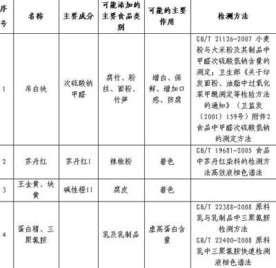 食品加工過(guò)程中易濫用的食品添加劑品種名單(第一批)