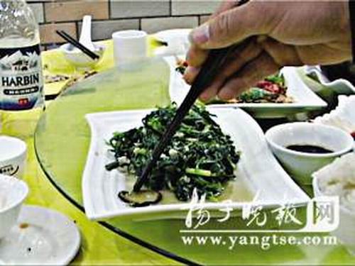 昨天傍晚,溫州人沙先生帶老鄉(xiāng)來(lái)到南京建康路附近一家飯店吃飯,飯吃到一半竟發(fā)現(xiàn)炒菠菜里有一條焦黑的蚯蚓,沙先生報(bào)了警。
