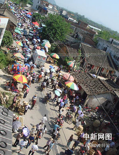 當地鄉(xiāng)鎮(zhèn)有關官員稱,今天前來趕集的人數在三萬以上。幾十年來,到“怪墟”走走已成為當地乃至周邊地區(qū)部門群眾歡度重陽的一大亮點。