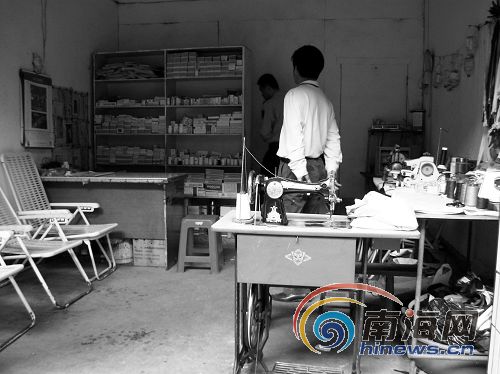 執(zhí)法人員在“張醫(yī)生牙科”的診所看到,這家診所的醫(yī)生沒有執(zhí)業(yè)證書,診所也沒有《醫(yī)療機(jī)構(gòu)執(zhí)行許可證》,屬于非法行醫(yī)。診所的負(fù)責(zé)人說,這家牙店是今年8月開始營業(yè)的,沒有多少生意。最后,執(zhí)法人員下發(fā)了行政處罰通知,勒令其停業(yè),并沒收了兩臺牙科綜合治療機(jī)!叭绻蛔屑(xì)看,我們還以為是家裁縫店呢!”記者跟隨執(zhí)法人員來到了一家裁縫店,裁縫店里還有診所營業(yè),還有兩個(gè)病人正躺上椅子上打吊針。記者看到,店門口放著一臺裁縫機(jī),機(jī)子旁邊擺了一個(gè)桌子,上面擺滿了顏色各異的線,而墻壁一側(cè)掛滿了褲鏈,另一側(cè)墻壁掛滿了空的輸液瓶。