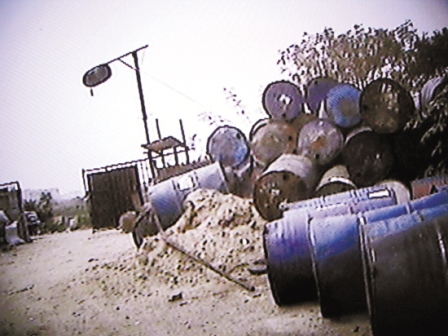 昨天下午,羊城晚報記者以收購“潲水油”為名,進入該家煉油窩點。從泰龍工業(yè)園附近的一條小路拐入,穿過鐵路涵洞不到100米即到,門口以竹柵欄做門,未見廠名或掛任何招牌,卻用木桿高高掛起一個油桶。人一走近門口,一陣難聞的餿臭味便迎面撲來,入門左側(cè)堆放了幾十個空油桶,還有一堆堆榨剩的油渣。場內(nèi)中央并排連著十幾個大水泥池,池內(nèi)裝填有大量剩飯剩菜等食品垃圾,空氣里彌漫著惡臭,令人掩鼻;再往里走,是一架帶有發(fā)動機的簡陋榨油機,機器轟鳴聲中,不斷有深黃色的油液被擠出,滴到榨油機下方的一個槽里;旁邊還有幾個貌似用作煮油的圓筒裝置,周圍油污滿地。記者現(xiàn)場看到,場內(nèi)沒有一間固定建筑,全是用木頭、鎂瓦搭建起來的粗陋臨時棚寮。