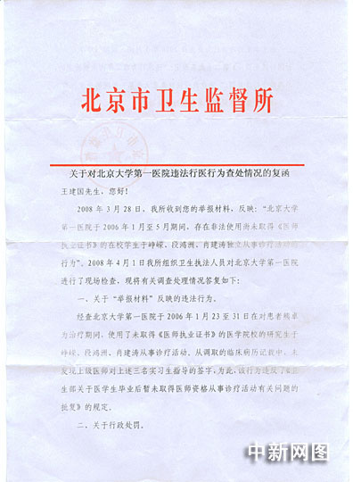 北大第一醫(yī)院回應(yīng)媒體報道:"非法行醫(yī)"說法不實