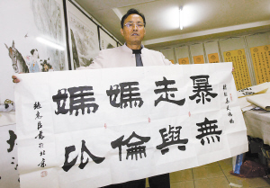 11月19日,本報(bào)在一版刊發(fā)了“北京書(shū)法家兩幅作品‘無(wú)與倫比’:一幅作國(guó)禮送奧委會(huì)主席羅格,一幅義拍救助武漢暴走媽媽”的消息。全國(guó)各地的書(shū)法網(wǎng)站、藝術(shù)網(wǎng)站紛紛轉(zhuǎn)載。
