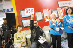 2008元的起拍價(jià)很快被1萬(wàn)、3萬(wàn)的喊聲淹沒(méi)下去。33號(hào)競(jìng)買(mǎi)者仿佛志在必得,一下子喊出了5萬(wàn)元的價(jià)格?珊笈乓晃淮髂R的青年男子根本沒(méi)有松口,一下子跟到7萬(wàn)。33號(hào)喊“8萬(wàn)”,“墨鏡”喊8.8萬(wàn)。嘩、嘩、嘩……無(wú)論是競(jìng)買(mǎi)者還是觀眾,再次為他們的愛(ài)心鼓起掌來(lái)。