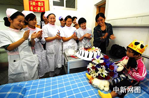 當(dāng)天,九江學(xué)院附屬醫(yī)院的醫(yī)護(hù)人員從住院病歷上得知今天是小胡5周歲的生日,大家自費(fèi)購(gòu)買了蛋糕、鮮花及玩具來(lái)到她的病床前,為她送上祝福,希望她早日康復(fù)。