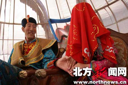 2007年初,身高2.36米的世界自然生長第一高人鮑喜順經(jīng)人介紹與夏淑娟相識,隨著感情的加深,同年3月26日,二人在赤峰市正式登記結(jié)婚;7月12日在鄂爾多斯市成吉思汗陵舉行了被譽為世界最高的婚禮。
