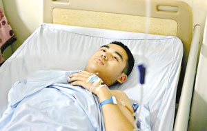 昨日下午,記者在醫(yī)院目睹了薛梟經(jīng)受的系列治療,過程很痛楚,但他很能忍耐。面對(duì)來訪者關(guān)心的詢問,他笑著回答:“沒事!睂(shí)際上他右臂截肢后傷口一直很痛,夜里很難安眠。薛梟被埋時(shí)耳朵進(jìn)了沙石,這些沙石要掏出來為防以后失聰。掏耳朵時(shí)疼極了,還出了血,需要等結(jié)疤后再次掏。他的右腿肌肉因?yàn)槭軌,昨天開始理療。此外他的肺部在被埋時(shí)吸入異物,導(dǎo)致他咳嗽不斷。母親譚忠燕又痛心又自豪地說:“這孩子很能吃苦,我相信他一定能挺過去!