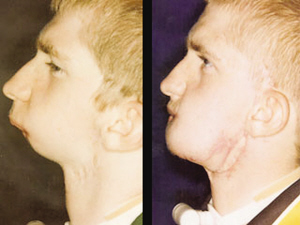 愛爾蘭少年艾倫·多爾蒂今年18歲,他患有一種罕見先天畸形,生來沒有下巴。從去年開始,多爾蒂做了多次手術(shù)。美國媒體27日?qǐng)?bào)道,紐約的醫(yī)生本星期為他做了最后一次手術(shù),完成了為他制造下巴的艱巨工程。