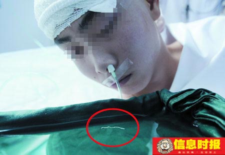 據(jù)小龍的主治醫(yī)生吳杰說(shuō),“醫(yī)院對(duì)小龍兩年來(lái)的影像資料進(jìn)行了比較,發(fā)現(xiàn)病灶的位置居然發(fā)生了兩厘米多長(zhǎng)的移動(dòng)。什么東西能夠在人體內(nèi)‘位移'這么長(zhǎng)距離呢?最大的可能應(yīng)是寄生蟲(chóng)了!敝螅t(yī)生通過(guò)開(kāi)顱手術(shù),果然從小龍的腦袋里“釣”出一條雖斷裂成三段,但主要部分依然活生生的寄生蟲(chóng)——裂頭蚴。據(jù)小龍父親介紹,由于迷信多吃當(dāng)?shù)厣嚼锏囊吧嗤苣軌驈?qiáng)健身體,小龍父親從小龍3歲時(shí)就開(kāi)始為其捕捉青蛙食用,夏季幾乎天天都能吃上一餐,一直到其六歲后方才減少捕食。