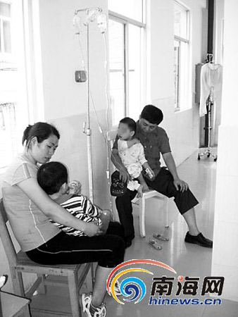 隨后,記者迅速驅(qū)車趕往五指山市采訪。在海南省第二人民醫(yī)院傳染科手足口病隔離區(qū)的病房里,記者見到了報(bào)料人王先生和他正在輸液治療的兒子。3歲的小王長(zhǎng)得十分可愛,可是他的手掌上、腳上和口腔中卻長(zhǎng)出了不少膿點(diǎn)。
