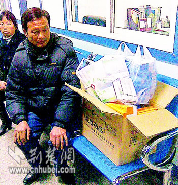 包師傅是襄樊中鐵十一局的鐵路通信工,患胃病多年。昨日下午,他看到武漢博大醫(yī)院治療胃病的廣告,和老伴坐火車來到武漢,找到位于漢口前進五路的該醫(yī)院。下午5時許,該醫(yī)院消化內科的萬醫(yī)生給他做了一系列檢查后,診斷他為慢性食管炎、糜爛性胃竇炎。萬醫(yī)生隨后給他開了兩個療程的藥,并稱吃了這些藥,20多年的胃病會痊愈。雖然藥價高達1.2萬多元,包師傅猶豫再三,還是從懷里掏出錢繳了費。讓他更吃驚的是,領出來的藥竟然裝了一個大紙箱和兩個塑料袋(如圖)。