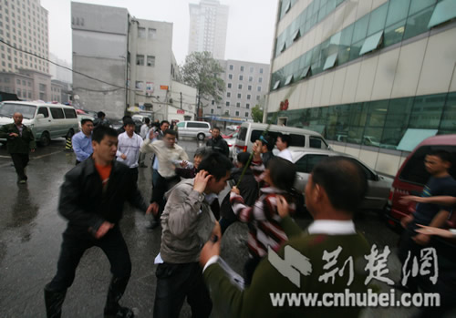 23日下午,湖北省婦幼保健醫(yī)院門前,發(fā)生一起流血事件:多名患者家屬在與醫(yī)院因醫(yī)療事故協(xié)商發(fā)生糾紛時,醫(yī)院一伙保安竟用“甩鞭”和鋼管等將患者家屬打倒,造成多人受傷。