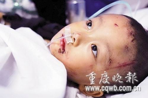 昨天(10月29日),記者在重慶市第六人民醫(yī)院見(jiàn)到了病床上這個(gè)叫孫浩的3歲男孩!拔也煌矗蚁雼寢屃。”孫浩說(shuō)到這里流下了眼淚。據(jù)了解,從孩子出事到現(xiàn)在,其父母一直沒(méi)有出現(xiàn),一直是干媽守在醫(yī)院。