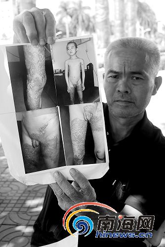 何先生出示孫子被燙傷的照片