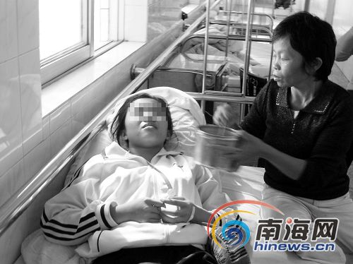 11月17日下午,記者在海南省農(nóng)墾總局醫(yī)院神經(jīng)內(nèi)科病房看到,阿霞的媽媽、姨媽和同學(xué)都在一旁照顧阿霞。阿霞目光呆滯,嘴里不時地喃喃自語說:“我好奇心強(qiáng),我要找知音陪我去逛街,我有好多話要說,我想找回我的記憶……”阿霞的媽媽和同學(xué)告訴記者,阿霞讀書很刻苦,成績都排在前幾位,她一直向往重點(diǎn)高中,還夢想著考上重點(diǎn)大學(xué),考試總想要考第一。
