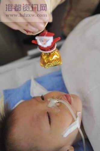 “寶貝,你醒醒!”母親向女士除了抹眼淚外,每天都要呼喚女兒幾百次,并給女兒按摩手腳。圣誕節(jié)那天,向女士買(mǎi)了個(gè)小小圣誕老人,掛在女兒的病床頭,平時(shí)的一些玩具也堆在女兒身邊。向女士說(shuō),孩子醒來(lái)的第一眼,要讓她看見(jiàn)美的東西。