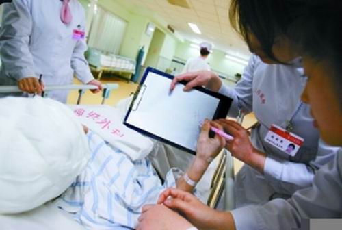 春節(jié)期間,值班護(hù)士有空就為其朗讀文章,誘導(dǎo)趙某開口說話,并在病歷卡上寫上0至9個(gè)數(shù)字,讓他把家里的電話號碼給圈出來。