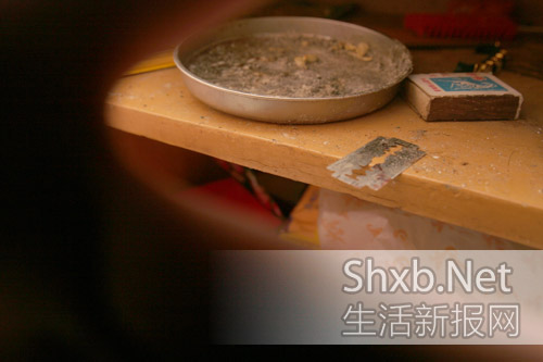 采訪中記者發(fā)現(xiàn),楊某的左手有3道疤痕,“你手上的刀疤是怎么回事?”記者問!笆俏易约嚎车。”楊某稱,小孩去世后,他情緒難以控制,為了發(fā)泄,便用刀砍了自己的手,還用刀片在自己大腿上刻下“永愛張×”,隨后又在女孩手上刻下“永愛飛龍”,以表達他們對感情的忠貞不渝。“你這樣做,不痛嗎?”“沒管那么多了!睏钅炒稹T跅钅车拇笸壬,記者看到不少被刀片劃過的痕跡和“永愛張×”的字樣。
