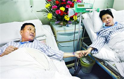 術(shù)后,夫婦倆住在同一病房,他們的病床只隔不到半米,夫妻二人經(jīng)常相互鼓勵(lì),互相溫暖,這讓醫(yī)護(hù)人員也深受感動(dòng)。“是我老婆給了我第二次生命,以后我要好好過(guò)日子,好好疼她!睏罴紫部粗眿D,滿(mǎn)含熱淚。
