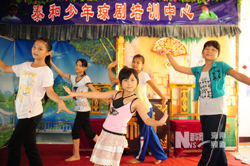 海南瓊海市退休教師王昱為傳承地方戲劇,用退休金義務(wù)創(chuàng)辦“泰和少年瓊劇培訓(xùn)中心”。他的義舉得到社會各界的支持和幫助,開班兩年多來有近百位孩子前來培訓(xùn)班學(xué)習(xí),學(xué)員當(dāng)中最大的15歲,最小的才4歲。參加培訓(xùn)的孩子常被邀請到各地演出,精彩的表演受到戲迷們的歡迎。培訓(xùn)班里的6名學(xué)員在一次全省瓊劇擂臺爭霸賽中,從1800名選手中脫穎而出,成功晉級50強,其中兩人晉級8強,10歲的符小玉憑借嫻熟的唱、念、做、打征服評委和觀眾,奪得大賽三等獎。(新華網(wǎng)/蒙鐘德 攝)