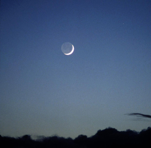 月球位于日、地之間時(shí)稱之為“朔”,月球暗的半個(gè)球朝向地球,我們看不到它;朔之后的一、二天,鐮刀狀的新月從西方的天空中出現(xiàn),當(dāng)月球呈鐮刀狀出現(xiàn)在天邊的時(shí)候,我們能看到月球圓面的其余部分顯現(xiàn)微弱的光輝。這種光輝來(lái)自地球反射的太陽(yáng)光,稱為“灰光”。地球能把入射陽(yáng)光的40%反射出去,比月球反射光線的“能力”高得多,從而可以照亮月球,產(chǎn)生“灰光”。