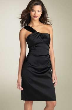 單肩——不對(duì)稱的美麗!配上胸部輕描淡寫般的皺褶,無需更多修飾就很完美的一條小黑裙,但不適合肩膀?qū)挼呐恕?/p>