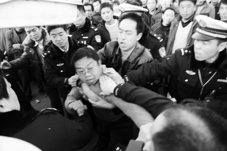 民警請他們自己上警車無效,遂采取強制措施。