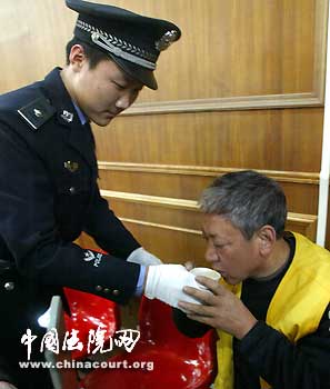 法警給被告人端來水