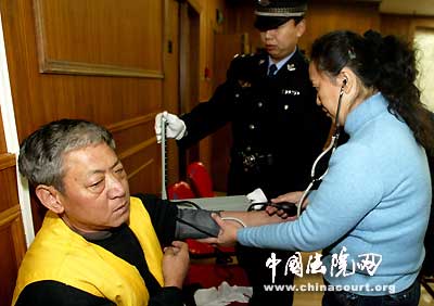 患了感冒的被告人薛建忠受審被帶出法庭后,哮喘病復(fù)發(fā),咳嗽不止,呼吸困難,負(fù)責(zé)押解的兩位法警見狀又幫他捶背、又給他找紙巾、又給他端水。法醫(yī)和醫(yī)院醫(yī)護(hù)人員聞訊趕來后,馬上為薛建忠作了檢查,并給薛建忠服了藥,薛建忠的病狀很快得以緩解。這一切讓薛建忠深受感動。 (作者: 韓元恒 丁力辛)