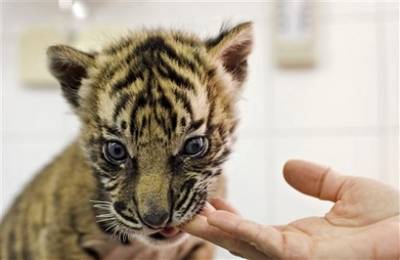 中新網(wǎng)2月26日電 以色列耶路撒冷動物園里的一只蘇門答臘虎,兩個月前生了兩只小老虎,沒想到母老虎不但不管小老虎,還差點(diǎn)吃掉它們,最后只有一只小老虎成功活下來。動物園獸醫(yī)無計可施,最后只好把小老虎帶回家養(yǎng),暫時充當(dāng)起虎保姆。