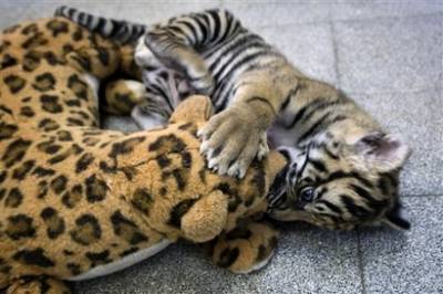 據(jù)臺灣東森新聞網(wǎng)報道,活蹦亂跳的小老虎不但會和小孩一起玩,還會把玩具豹玩得不亦樂乎。不過,可別看它一副自得其樂的樣子,其實小老虎有著非?蓱z的身世,因為出生才十天的它,就不幸地被自己的親生母親拋棄。