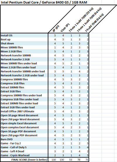 最近在市場(chǎng)上流行的Windows 7 Build 7048版相比較于前一個(gè)beta版本7000,以及Vista SP1和WinXP SP3,哪一個(gè)性能更好?著名的評(píng)測(cè)人Adrian Kingsley-Hughes針對(duì)這四款操作系統(tǒng)進(jìn)行了有關(guān)的評(píng)測(cè)。