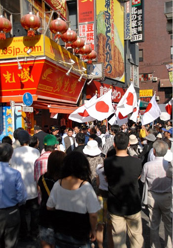 他向記者談起9月26日的那次排華事件,先是無(wú)奈地一笑,半開玩笑地講到:“陽(yáng)光城門前那天真的飄滿了太陽(yáng)旗啊。”他告訴記者,其實(shí)那回事件是“陽(yáng)光城”純屬扮演了“出頭鳥”的角色被偶然卷入到一場(chǎng)政治事件中。
