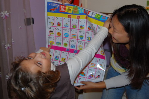 11月初我受邀來到馬爾蒂娜家里時,她正在寫作業(yè),我在門外就聽到她嘴里還叨咕著乘法口訣。她做完了作業(yè),我問她用筷子技巧是否有進(jìn)步,她拉著我到廚房表演起來。為了表示對她進(jìn)步的肯定和鼓勵,我送給她一本《漢語拼音趣味圖案冊》,并告訴她可以按照這些生動有趣的拼音圖案開始正式學(xué)習(xí)漢語。她手捧著禮物,深深地回送給我一個吻,這是意大利最傳統(tǒng)的表示問候或感謝的禮儀。