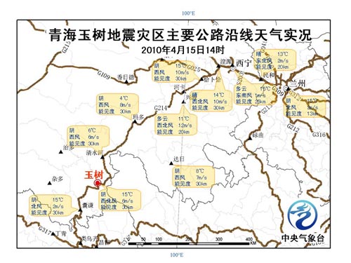 據(jù)悉此次專報(bào)重點(diǎn)針對青海玉樹地震災(zāi)區(qū)天氣情況和氣候背景進(jìn)行預(yù)報(bào)和分析,主要包括震區(qū)最新天氣實(shí)況、玉樹地震災(zāi)區(qū)未來5天天氣預(yù)報(bào)、道路交通氣象預(yù)報(bào)、決策建議以及玉樹地震災(zāi)區(qū)氣候背景分析和氣候趨勢預(yù)測等內(nèi)容。