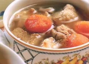 蘿卜海帶湯:海帶100克、桂花10克、姜5片、蘿卜1個約300克。把蘿卜削皮切成小塊,用1500毫升水以大火煮沸,先放蘿卜、海帶、姜片,待水再度滾時轉(zhuǎn)成小火,直到蘿卜、海帶煮爛熟,最后加入用紗布包著的桂花,再煮15分鐘即可。每日午餐、晚餐前先喝湯吃料。蘿卜能消積滯及清理腸胃;海帶性咸寒,常食能清血管中的多余血脂。(佚名)