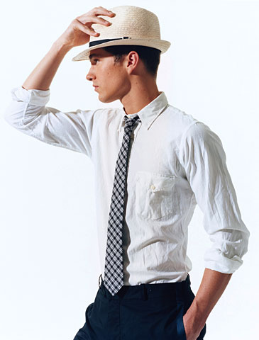 一、襯衫領(lǐng)帶黑白配?否定!除非今天是你最好朋友的婚禮大喜日子,否則穿著白色襯衫黑領(lǐng)帶就太過于僵硬了。相反的,選擇一件方格印花的襯衫或者領(lǐng)帶,會有更好的效果。如果將袖子高高的挽起來,則更有種玩世不恭的瀟灑和自然。當(dāng)然,如果你足夠自信,那么黑色的褲子搭配一頂小禮帽,將會讓你完全的精彩出眾。