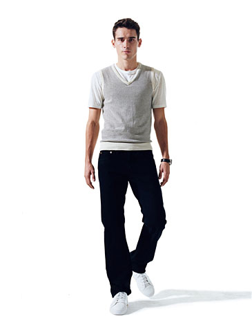 二:做舊的黑色?肯定!Marky Ramone 可能更喜歡他的黑色牛仔褲,但時,如果你穿著一件運動背心外套,或者休閑毛衣的話,仔褲最好也要具有同樣的優(yōu)雅質(zhì)地才可以。我們建議你選擇一跳炭灰黑色的略有褪色的仿舊效果仔褲,然后白色T恤,加上運動鞋,就可以了。