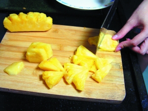 1 菠蘿去皮和眼洗凈,果肉切成塊狀;紅蘿卜、紅椒切成。磺喽狗湃敕兴徐桃幌,撈起過冷河。