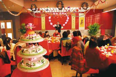隨著生活水平的提高,在飯店里吃年夜飯、擺酒宴成為越來越多家庭的選擇。30年來,改變的是吃飯的場所,不變的是熱鬧喜慶的氣氛。圖為2007年,鄭州市的一家人在酒店設(shè)宴為老人賀壽。王蕾攝