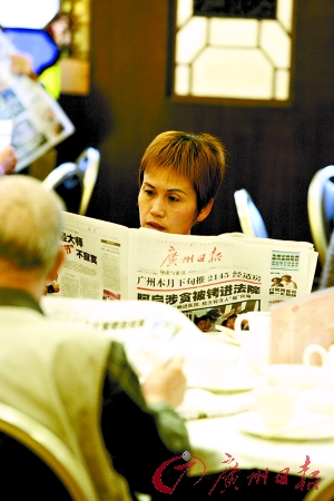 “早茶”歷來都是廣州市民一起交流信息的平臺(tái)。每天到文昌路廣州酒家喝茶的施老伯,一桌子人都是喝了十年以上的茶友。施老伯起得早,每天六七時(shí)就會(huì)先來霸位,然后那些三四十歲的“茶友”就會(huì)陸續(xù)趕到,他們一邊看報(bào)紙,一邊交流心得,不管大事小事都要評(píng)頭論足一番,“這種方式真的很好,”施老伯說。