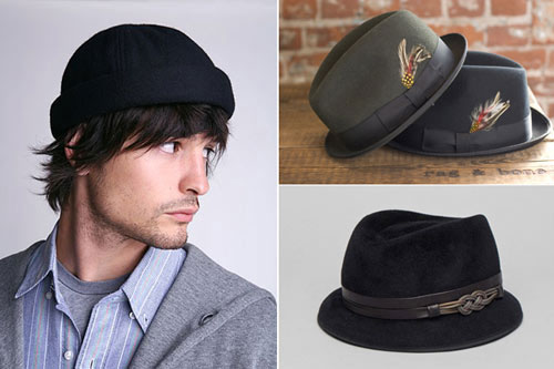 順時(shí)針, 左起: Urban Outfitters 羊毛便帽, $28; Rag & Bone 豬肉餅帽, $150; Victor Osborne Roland 帽子, $275.