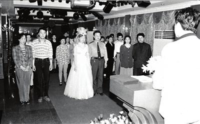 1998年5月11日,婚姻登記員向登記領(lǐng)結(jié)婚證的青年宣讀法律規(guī)定的有關(guān)夫妻的權(quán)利與義務(wù)。濟南市民政局婚姻登記管理處當(dāng)年在向婚姻當(dāng)事人分發(fā)結(jié)婚證書時,一改過去簡單、隨意的現(xiàn)象,而是為男女雙方舉行發(fā)證儀式,讓新婚夫婦感受到領(lǐng)取結(jié)婚證的神圣與莊嚴。