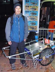 吉田表示“希望能遇到巴士旅行不能到達(dá)的偏僻地方的人們”。于是他選擇了徒步,帳篷和便攜式火爐等裝備重達(dá)約50公斤,塞不進(jìn)雙肩包里,因此準(zhǔn)備了一臺手拉車。
