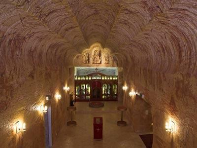 先從世界各地飛到澳大利亞悉尼,然后轉(zhuǎn)機(jī)到南部教會(huì)城市阿德萊德(Adelaide),在這里住宿一夜,補(bǔ)足精神后,第二天上午乘坐惟一一家經(jīng)營(yíng)庫(kù)波佩迪航線的Kendell Holidays航空公司的小飛機(jī),在只有8個(gè)座位的單引擎飛機(jī)上度過(guò)難挨的3個(gè)小時(shí)——沒(méi)有空姐伺候,也沒(méi)有咖啡和紅酒,舷窗下面是一望無(wú)際的紅土沙漠,就在女孩子們即將花容失色的當(dāng)口兒,庫(kù)波佩迪到了。在高達(dá)40攝氏度的熱浪中坐上四驅(qū)車(chē),沿途清一色的坑洞和起伏的的紅色沙丘,仿佛登上了土星,在這里首先要學(xué)會(huì)“黑白顛倒”,把白天當(dāng)夜晚,把夜晚當(dāng)白天。先從晚上開(kāi)始吧,因?yàn)橥砩蠝囟炔拍芙迪聛?lái),先去商店給情人挑選蛋白石,然后——庫(kù)波佩迪郊外有一個(gè)稱作“月球世界”(Moon Plain)的沙丘,是觀看南半球流星雨的最佳地點(diǎn),與情人摸黑來(lái)到這里,坐在柔軟的沙子上,老板會(huì)送上兩杯冰涼的澳洲利亞橙,然后透過(guò)高倍天文鏡了望星河閃爍的太空,在流星即將滑落的瞬間,擁緊你的情人許下星語(yǔ)心愿.....沙漠里的白天酷熱難當(dāng),最好呆在旅館里,而洞穴旅館恰恰是庫(kù)波佩迪的特色,情人們稱其為“洞房”——地地道道的“洞”。∈聦(shí)上,鎮(zhèn)上除了教堂和醫(yī)院,基本都是洞穴居所,這些大小不等的洞穴全部是開(kāi)采蛋白石廢棄的礦坑。庫(kù)波佩迪最大的旅館“沙漠洞穴旅館”(Desert Cave Hotel)有20間“洞房”,別看在地下,卻相當(dāng)豪華,除了地下恒溫23攝氏度外,餐廳、酒吧、K房、珠寶店一應(yīng)俱全,曾經(jīng)入選過(guò)《世界頂級(jí)豪華小旅館》(Small Luxury Hotels of the World)。